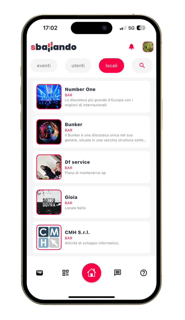 - Trova eventi, locali e altri utenti